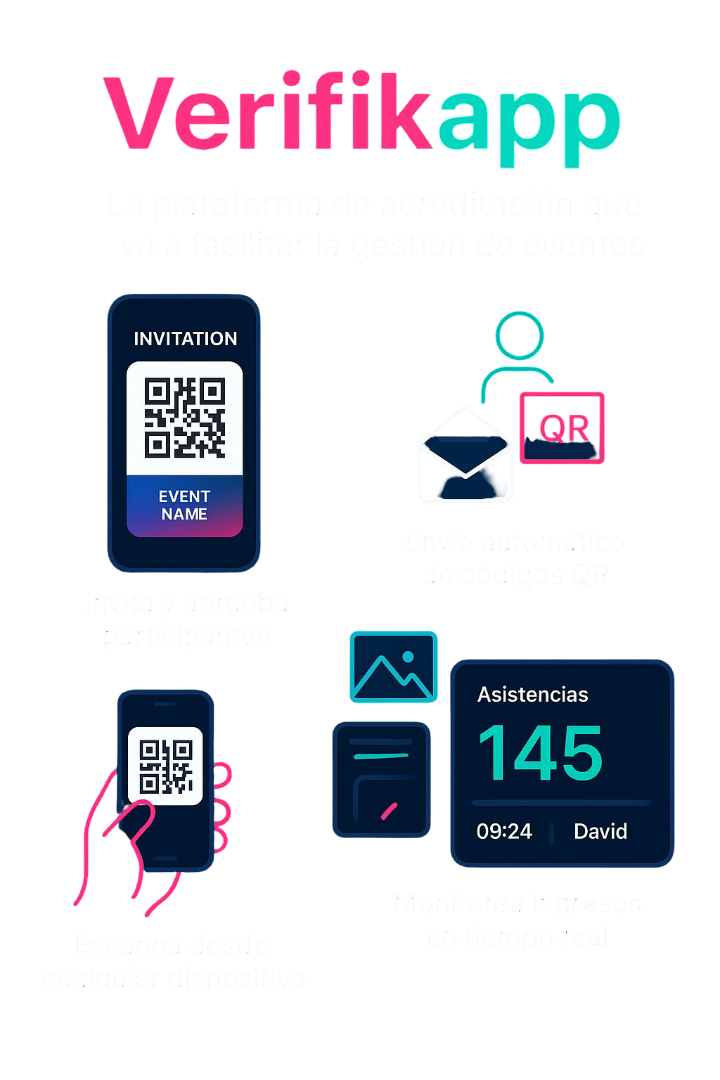 Cada participante recibirá automáticamente su código QR único por email. No más listas impresas: acceso digital, rápido y sin contacto.